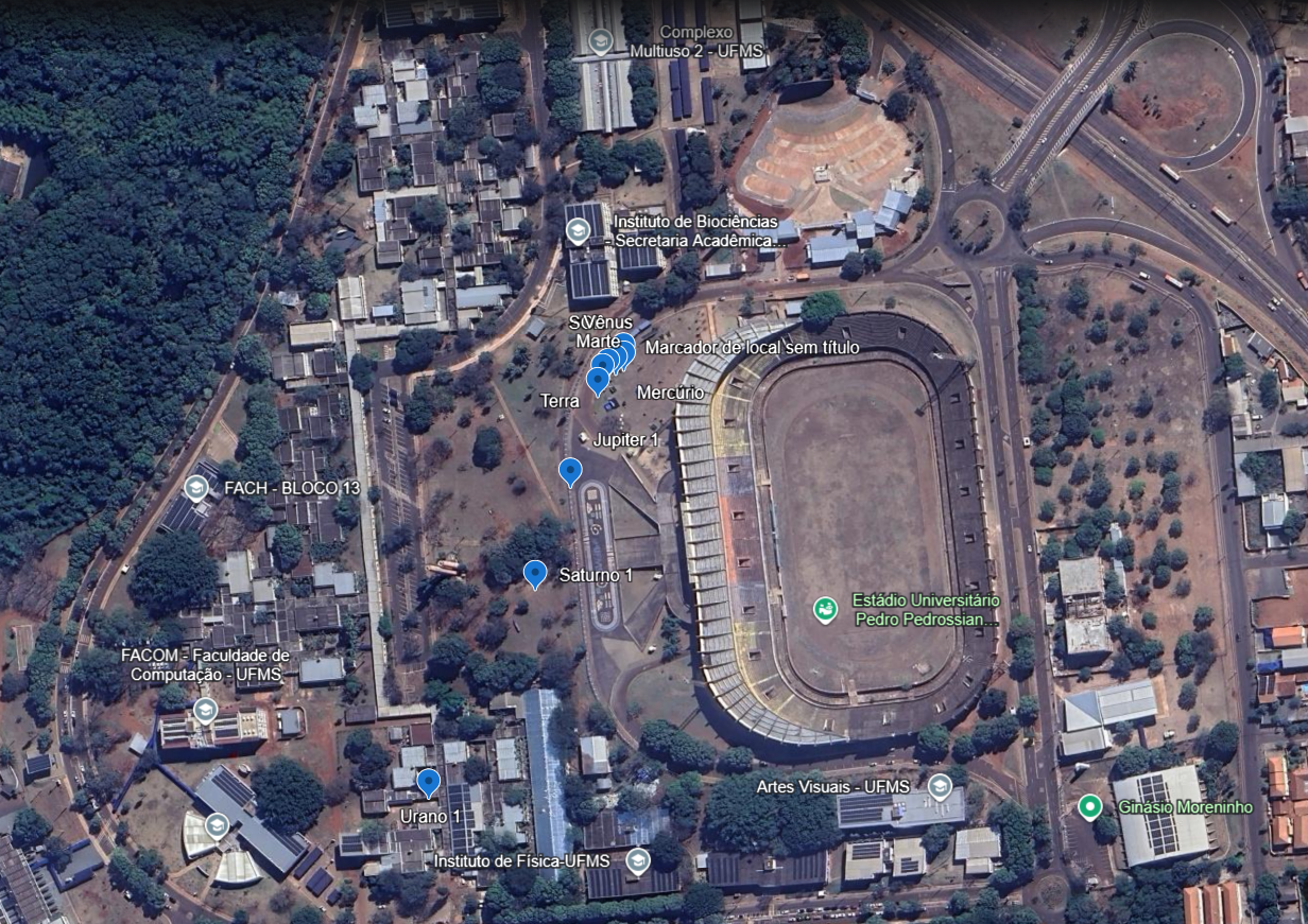 O Campus da Cidade Universitária da UFMS em Campo Grande, possui a Caminhada Planetária, que consiste de um conjunto de placas informativas, distribuídas de forma a representar as posições relativas dos planetas do sistema solar em relação ao astro rei, o Sol. A caminhada começa pelo sol, localizado no Parque da Ciência da UFMS.